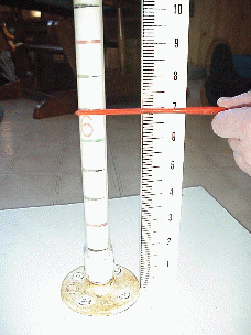 Cut paper ruler sheet into strips (along light grey lines). Tape the pieces together alongside a yardstick or other long ruler to keep the new ruler accurate. If you cannot finely adjust the size of the printout of the online image of the paper ruler so that it accurately matches an ordinary ruler, contact the State Climatology Office for an accurate copy. (You may want to use the old but effective LVIEW graphics program to print the ruler.) |